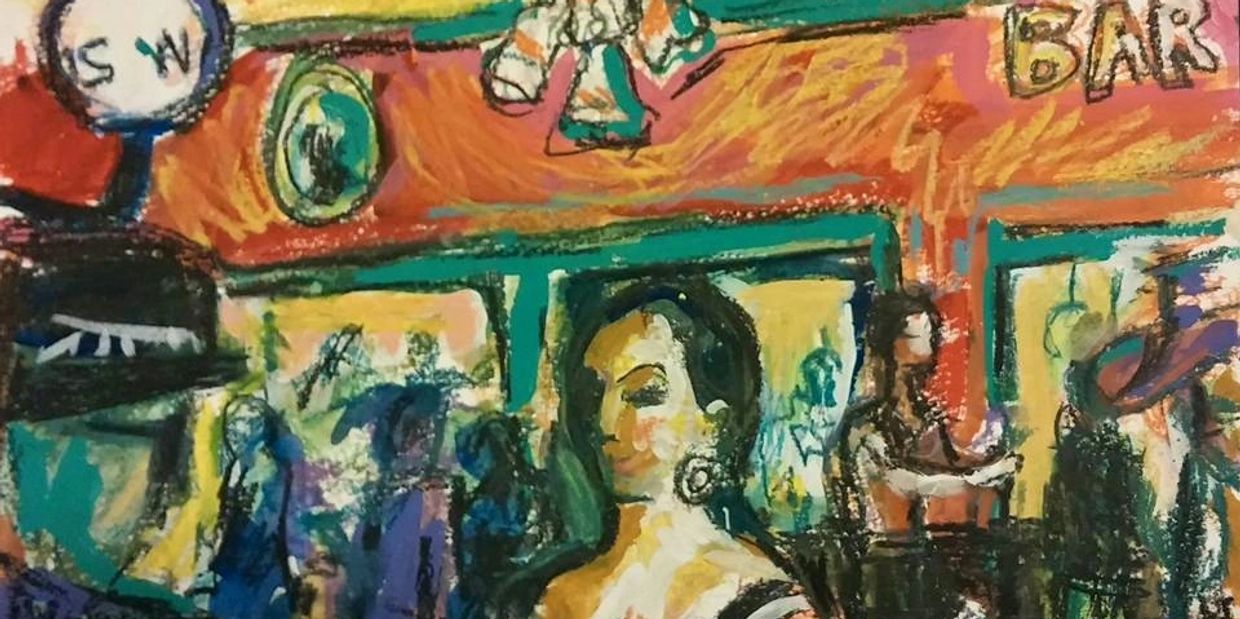 (Above photo is a painting done on site one beautiful night at The Bisbee Grand by Bisbee artist, Gretchen Baer.)